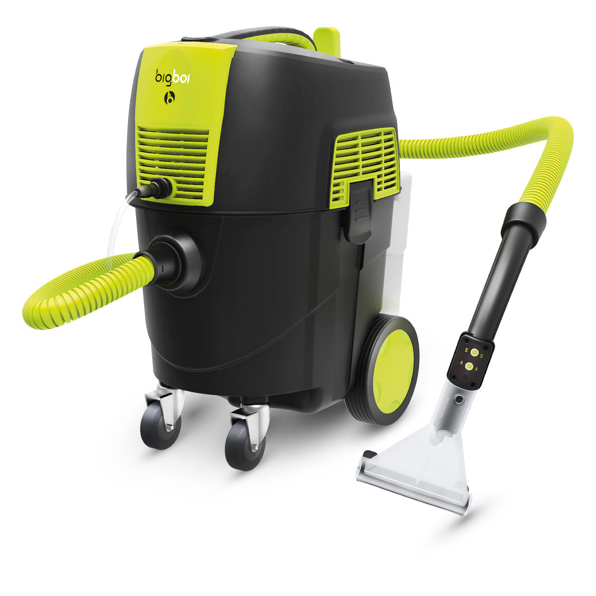 Bigboi SUCKR Pro är redan en kraftfull våt- och torrdammsugare. Men med detta kit kan du uppgradera den till en ännu starkare maskin – en riktig textil- och interiörrengörare. Du behåller alla fördelar med SUCKR Pro, som fjärrkontrollen på munstycket och den kraftfulla motorn.