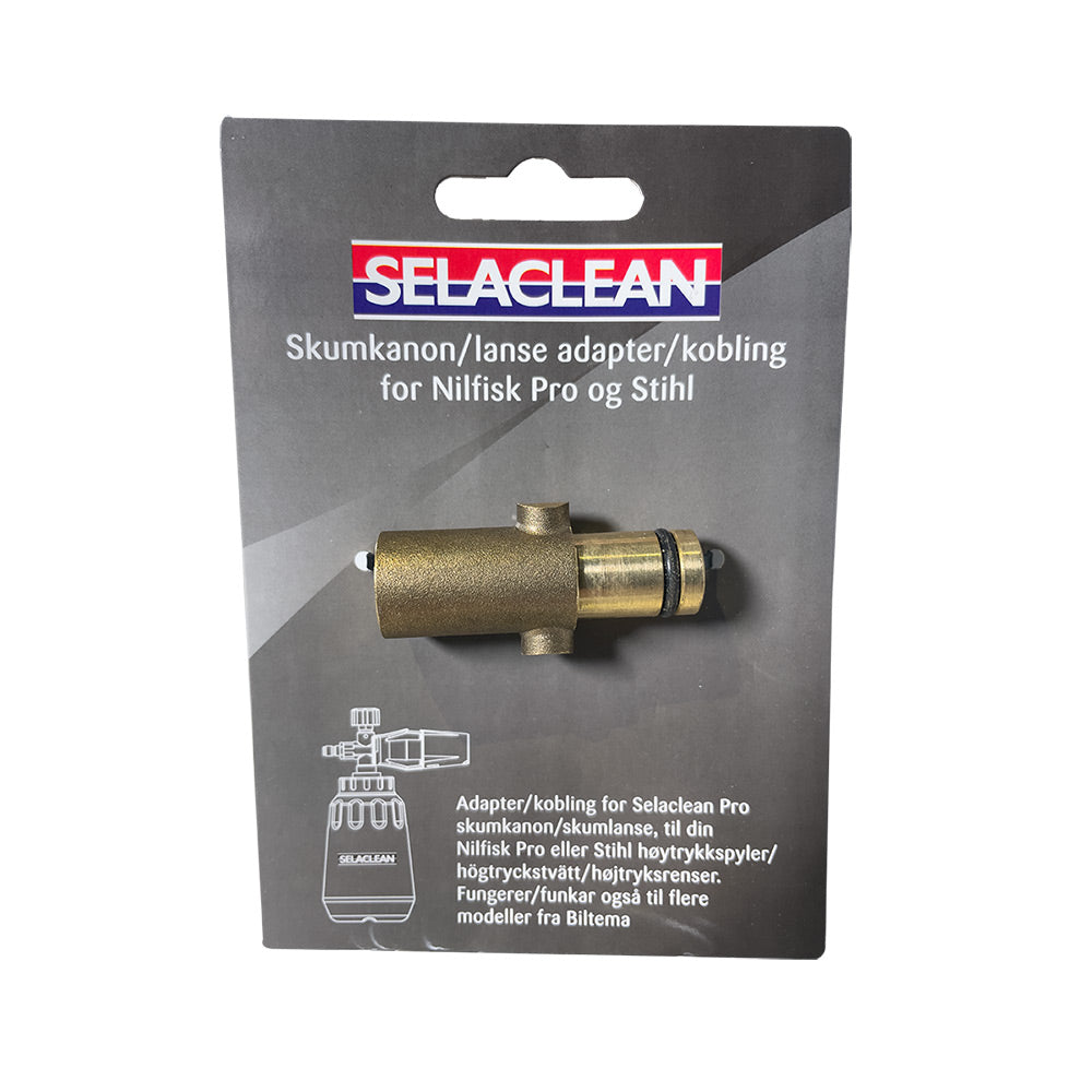 Högtrycksadapter för att koppla ihop tillbehör som t.ex. skumkanon, rörrensslang etc. till din högtryckstvätt. Denna passar Nilfisk Proffs och Stihl högtryckstvättar. Passar tillbehör med 1/4" invändig gänga.