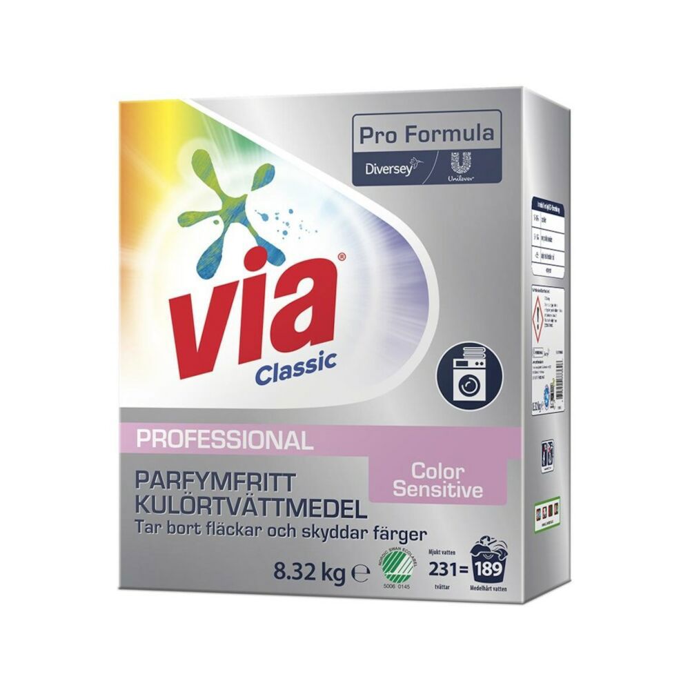 Via Color - Ett tvättmedel för att bevara plaggets färger och få det att se fräschare ut längre. Via Vit - Anpassat för att behålla kläderna vita och ljusa även efter många tvättar. Pulvertvättmedel är också mycket effektivt för hårt smutsad tvätt och fläckborttagning.